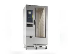 Depending on the model, a combi oven can be used for reheating, temperature holding, steam cooking, dry heat treatment, or combined cooking modes. Some versions are equipped with additional functions, including grilling or divided cooking chambers.