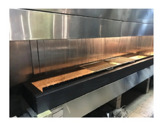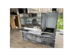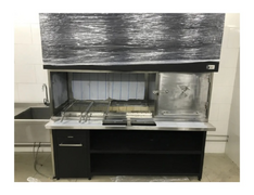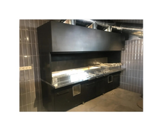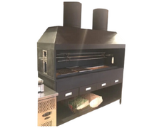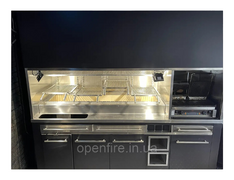 Charcoal Grill with Skewers and Exhaust Hood Open Fire