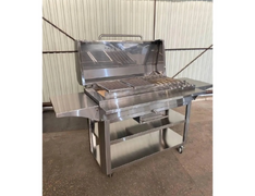 Professional Mobile Charcoal Grill with Lid (Stainless Steel) Open Fire