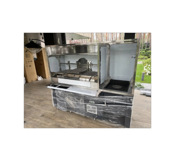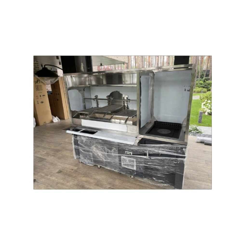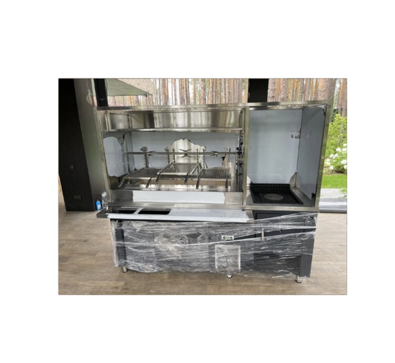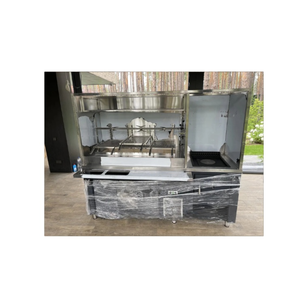 This professional charcoal grill offers multifunctionality and high quality, making it perfect for cooking at large events or in professional kitchens. With skewers, removable grates, and a designated space for a pot, it provides flexibility for preparing a variety of dishes.