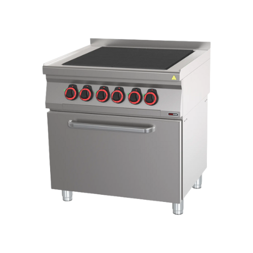 Professional electric stove with oven for cooking dishes. Suitable for restaurants, pubs, cafes and fast food restaurants. Designed for GN 2/1.
