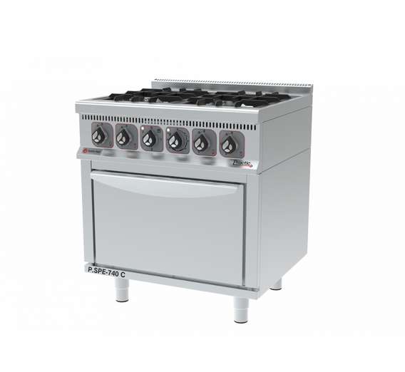 - Upper section: stove with gas burners for cooking