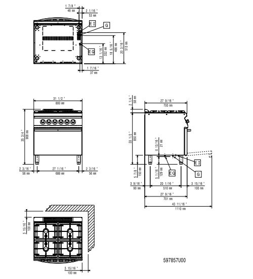 The gas stove Z7GCGH4CE0 Zanussi Professional is intended for cooking, baking and other heat treatment of products. Stove dimensions: length - 800 mm, width - 700 mm, height - 850 mm. Oven dimensions 540x650x300. Oven working temperature 300 °C, power 6 kW. The stove meets all quality standards.