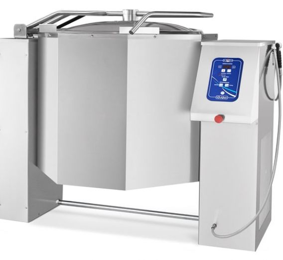 The volume of the boiling pan is 250 liters. The device has an option of regulating the temperature of a “steam water jacket” within +20+120°C range and time of cooking. In case if there is no water in the “steam water jacket” the heating will stop automatically. The product being prepared can be cooled by the way of cooling the “water steam jacket” by cold lotic water. The boiling pan is equipped with a hand shower. The drain of the readymade product is done by electric drive tilt of the boiling pan reservoir. The lid of the boiling pan can be fixed in any position. The facing of the boiling pan is done from stainless steel AISI 304, the bowl - from stainless steel AISI 316. The boiling pan support is to be mounted to the floor surface either by encasing in concrete or with the help of anchor bolts.