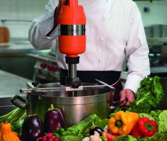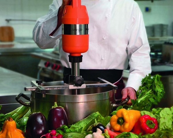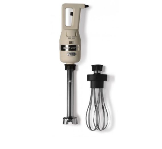 Fama Serie Gio Heavy 350 VV is a professional hand blender designed for preparing a wide range of dishes in catering establishments. Equipped with interchangeable attachments—a mixer and a whisk—it makes it easy to prepare items such as vegetable soups, mashed potatoes, sauces, liquid dough, mayonnaise, whipped cream, creams, omelets, and soufflés.