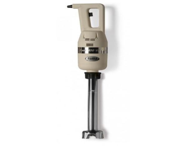 Fama Serie Gio Heavy 450 VF is a professional handheld mixer, ideally suited for preparing vegetable soups, mashed potatoes, sauces, thick batters, mayonnaise, tomato paste, and other products in foodservice establishments. It is designed for efficient and safe operation, even under heavy loads.