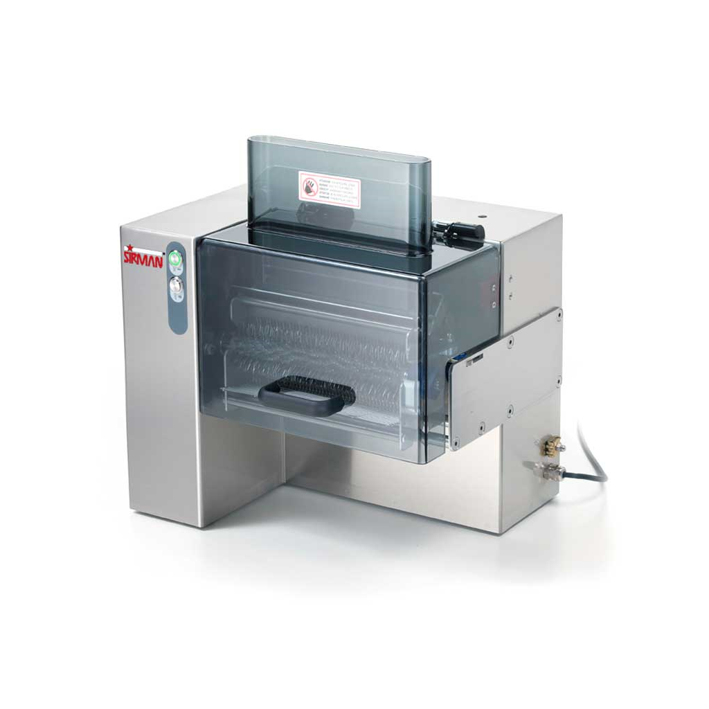 The Sirman Drake meat tenderizer is a high-quality tool designed for softening steaks and fish, as well as cutting strips. This machine is an excellent aid for professional kitchens, delivering consistent cuts and tenderizing meat for further preparation.