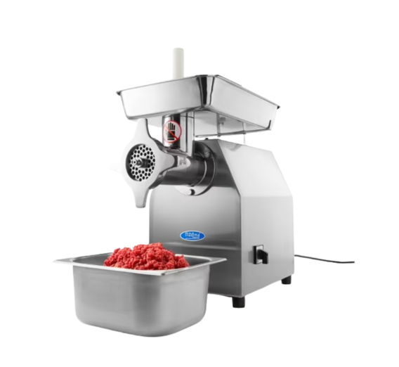 A professional meat grinder designed for intensive use in food processing facilities, restaurants, and butcher shops. It ensures high productivity with a capacity of up to 320 kg/h.