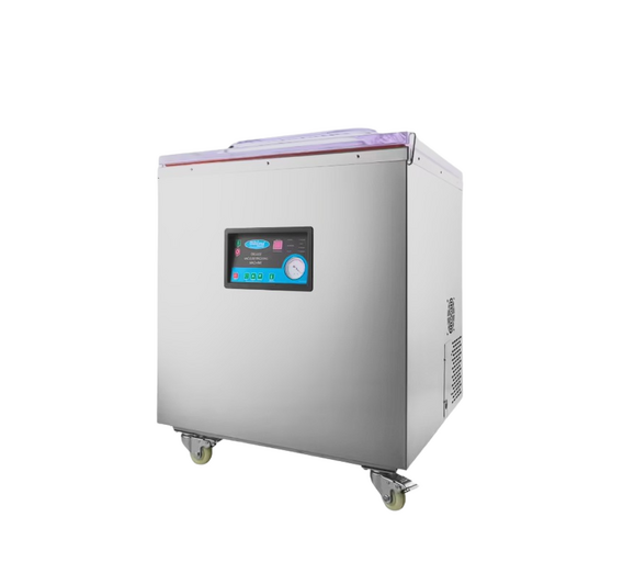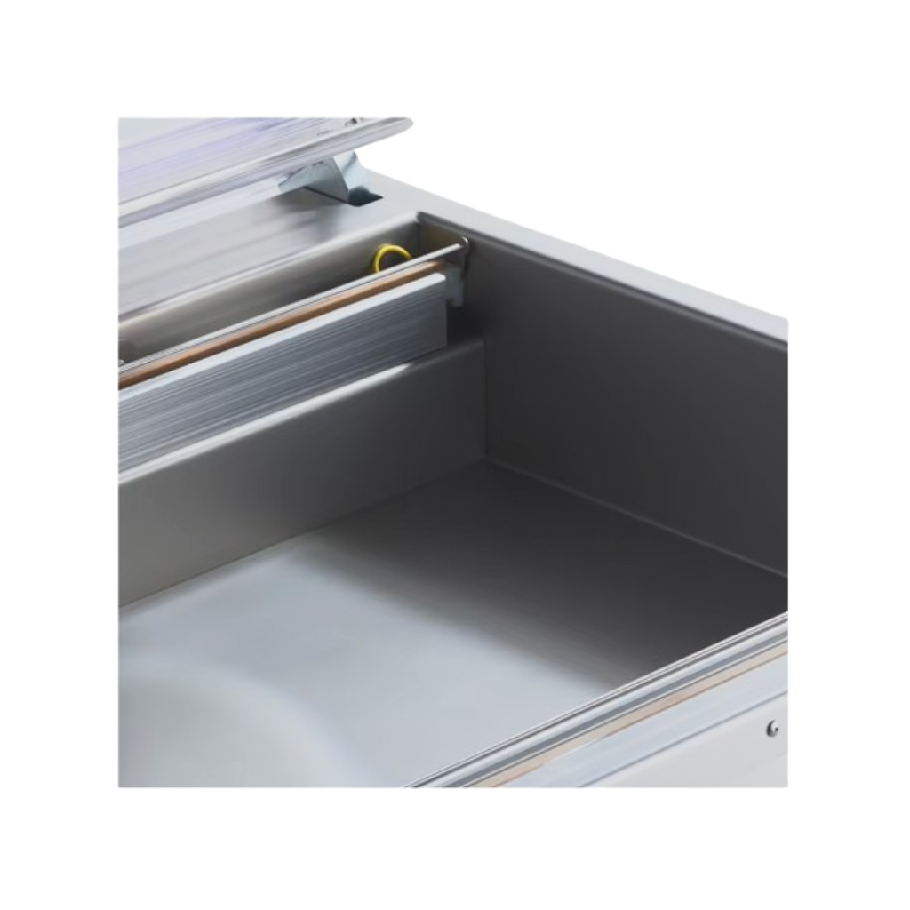 The Maxima MVAC 700 is a premium floor-standing vacuum packaging machine designed for professional food packaging. With its dual sealing bars, it enables simultaneous packaging of two vacuum bags, making it perfect for intensive daily use in restaurants, supermarkets, and other professional kitchens.