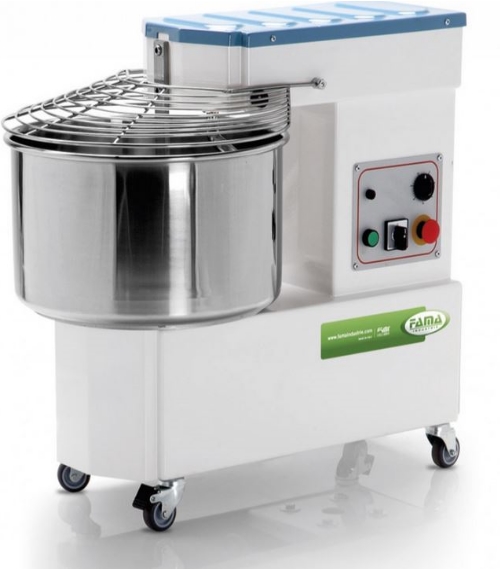 The Fama KG 44 spiral dough mixer is designed for professional use in pizzerias, pastry shops, and commercial kitchens. Its spiral-shaped design enables quick and even preparation of high-quality dough.