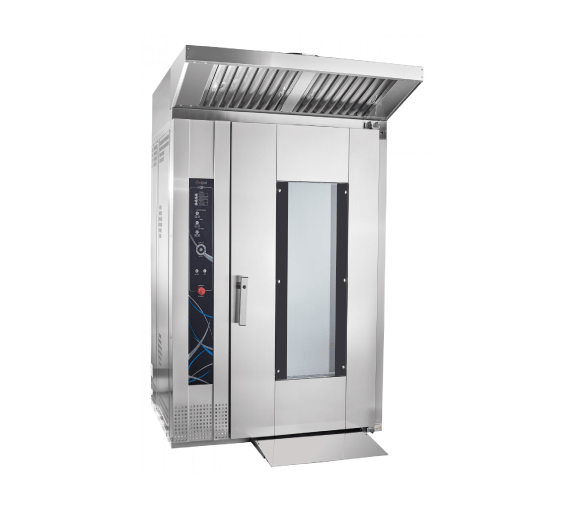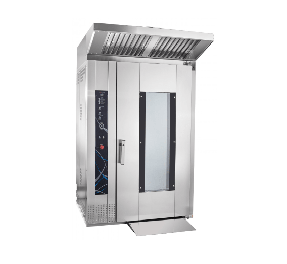 The RPSh-16-2/1M rotational baking oven is designed for versatile baking of bread and confectionery products using steam, hot air, or a combination of both.
