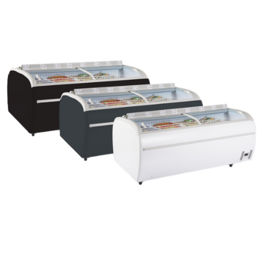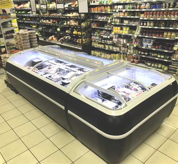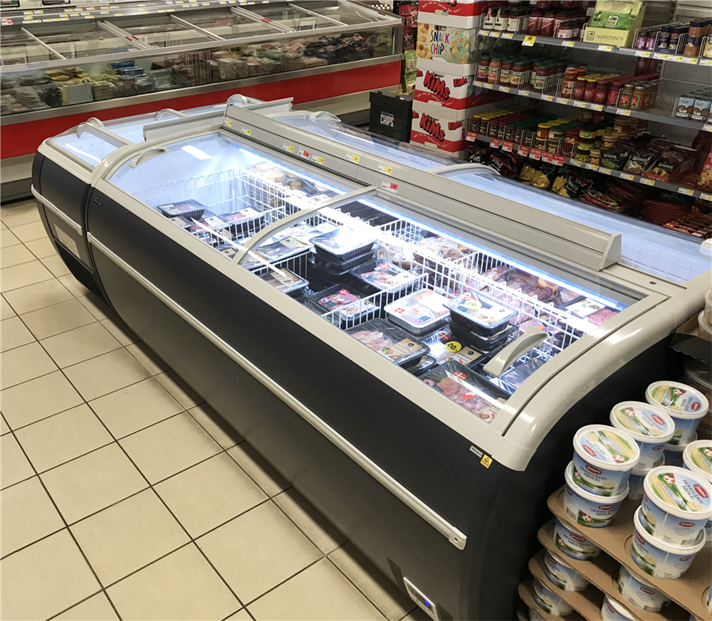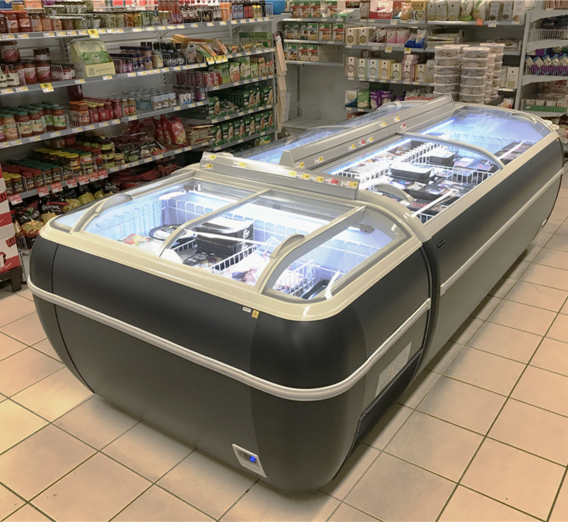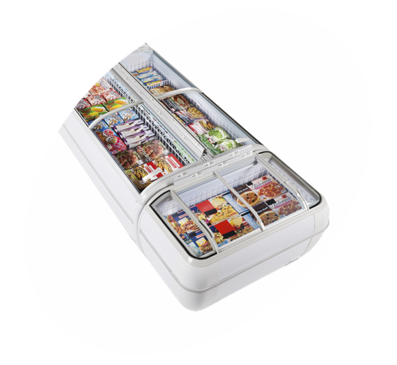 The TWIN range, with its double cooling system, features innovative design. It reduces the amount of floor space needed and running costs, whilst increasing reliability. Instead of putting two freezers back-to-back, the TWIN is built as a single unit with no partition. The result is more space for content with a smaller footprint. The units are ideal for supermarkets or grocery stores with limited space, as they have the same volume in litres as two standard freezers of the same length, despite less depth. The space-saving can be used for more rows of freezer islands or to make more room for customers. Automatic defrosting and LED lighting are of course standard. This version able to switch between cooling and freezing.