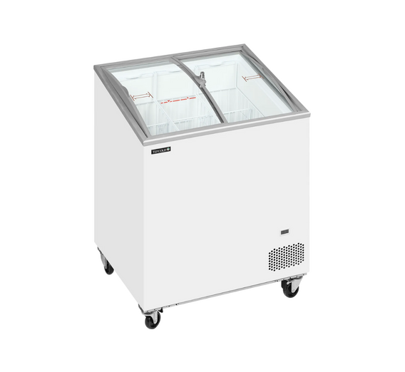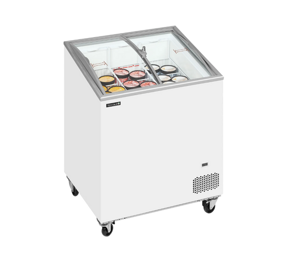 The IC-SCEB freezer is a price friendly compact display chest freezer. It's great for start-up companies, season sales etc. It's very stable and has a solid build, while at the same time being on wheels so it's easy to change its location in the shop. It also comes in different sizes. The different sizes make the model perfect for smaller shops and delis with limited space, but it still works well in larger shops, gas stations, supermarkets etc.