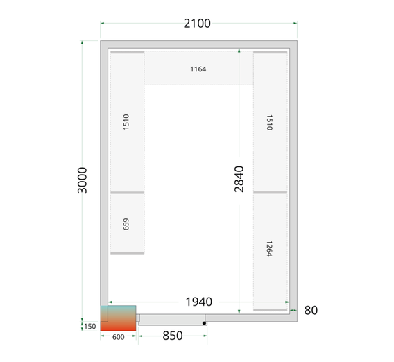 Cold room with 850 mm wide door.
