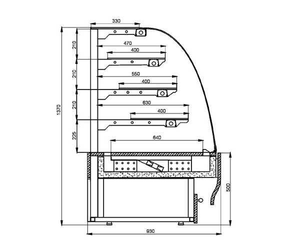 Confectionery displays "C-Gn" is equipped with an efficient fan-cooling system, which ensures a stable class="card__details" temperature on each of the shelves. There humidity control system, which supports the humidity range of 30-80%. The showcase provides the front glass heating warm air, and condensate removal system that requires no maintenance. Body lining made of a material imitating wood. The front panel is equipped with a backlight.