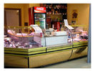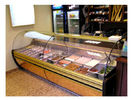 Diplay refrigerator equiped with lower panel backlight. Display's special shape is highlighted by lower panel in gold, red, green, blue and yellow. When used together with angular displays can be combined in monoblocks of any configuration.