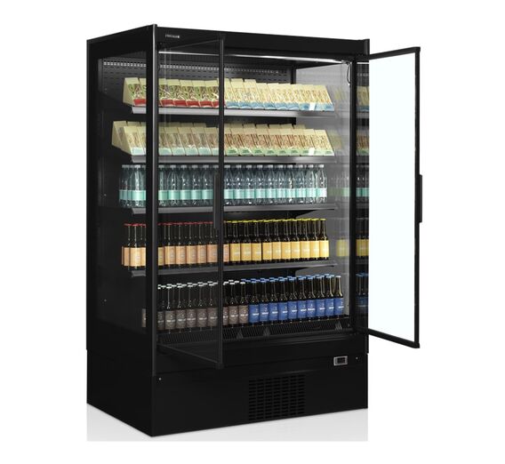 EXTRA Multideck is a full glass door quality cooler with double glazed hinged glass doors for added energy efficiency savings on running costs. It has excellent internal illumination with vertical LED lighting in each door.Shelves can be flat or tilted to 10 or 20 degrees with ticket strips and shelf risers as standard.