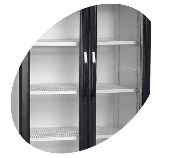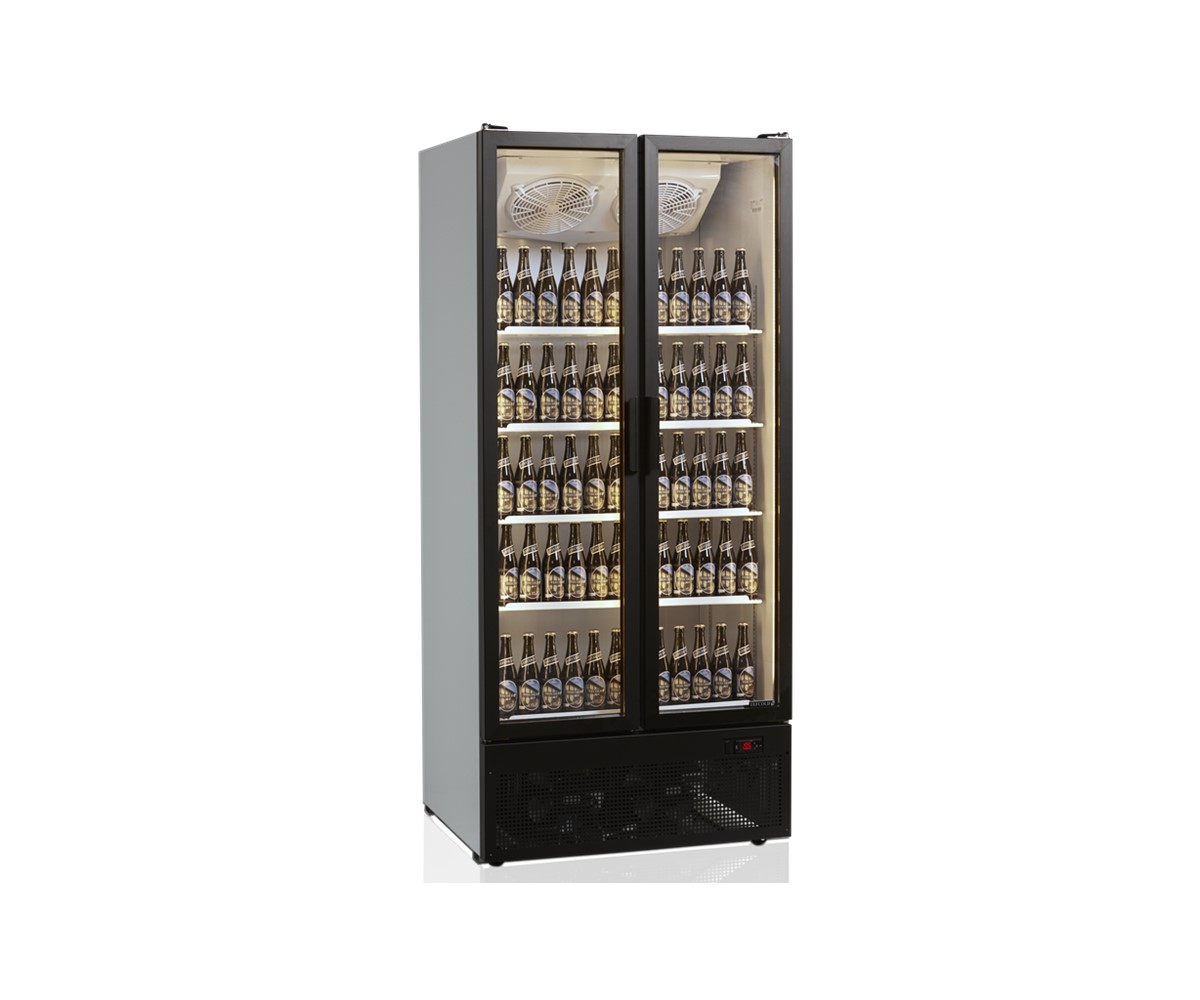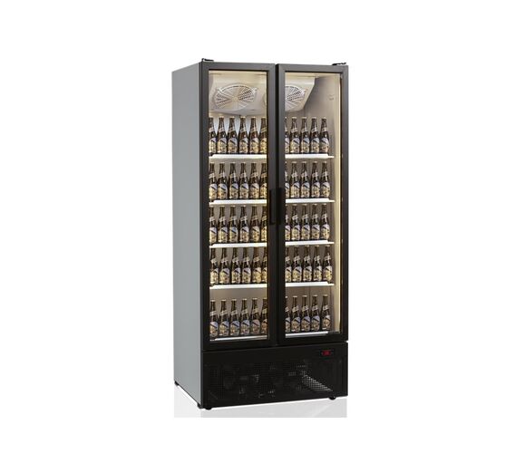 The FS range is without a light canopy. It gives a little more interior height and makes for a cleaner looking cabinet. It is an excellent choice of double door display cooler when a light canopy for branding isn't required. With build quality and reliability as standard this style of cabinet has become a popular choice for convenience stores and shops. This model is standard with white exterior and interior. It comes with 5 adjustable white wire shelves, 2 self-closing hinged glass doors and 2 vertical full length LED lights inside the door frame.