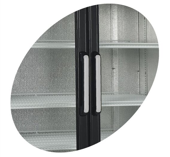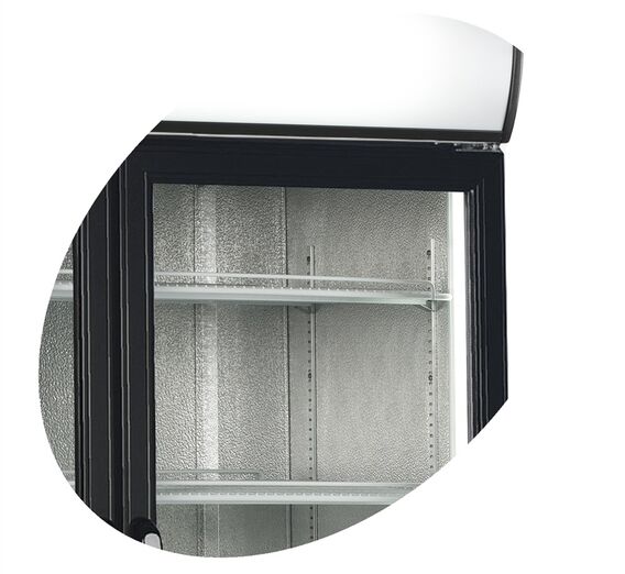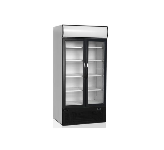 The FSC range is with a light canopy. The possibility for customized branding is eye-catching and stimulate impulse sales. The unit keeps beverages cold whilst presenting and promoting the products to their best advantage. This model is a popular choice for shops, convenience stores and supermarkets. It is standard with white exterior and interior. It comes with 5 adjustable white wire shelves, 2 self-closing hinged glass doors, 2 vertical full length LED lights inside the door frame and a LED light canopy.