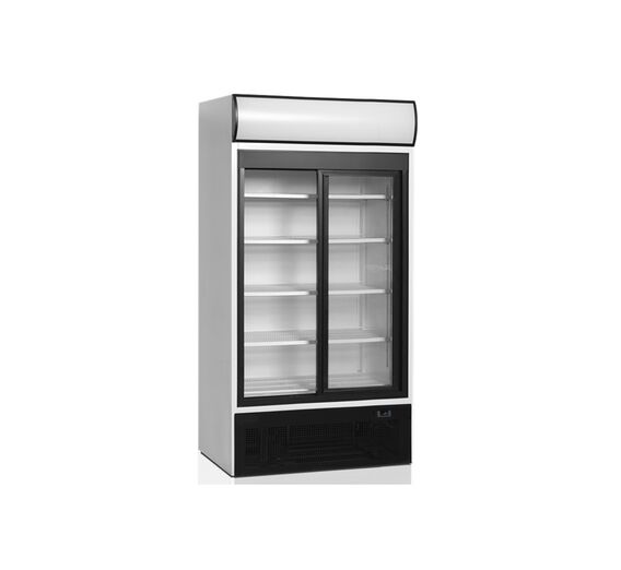 The FSC range is with a light canopy. The possibility for customized branding is eye-catching and stimulate impulse sales. The unit keeps beverages cold whilst presenting and promoting the products to their best advantage. This model is a popular choice for shops, convenience stores and supermarkets. It is standard with white exterior and interior. It comes with 5 adjustable white wire shelves, 2 self-closing sliding glass doors, 2 vertical full length LED lights inside the cabinet and a LED light canopy.