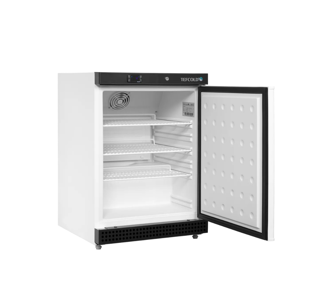The TEFCOLD UR200W1 is a classic undercounter storage cooler with an impressively low energy consumption. In fact, it uses 47% less energy than the standard UR200 models. It comes with adjustable wire shelves with a load capacity of up to 15 kg per shelf. The small storage fridge has fan-assisted cooling, and the temperature is easy to set on a digital thermostat. The UR range is available in various colors and sizes, and you can choose between solid door- or glass door models. See the UF range for freezer options.