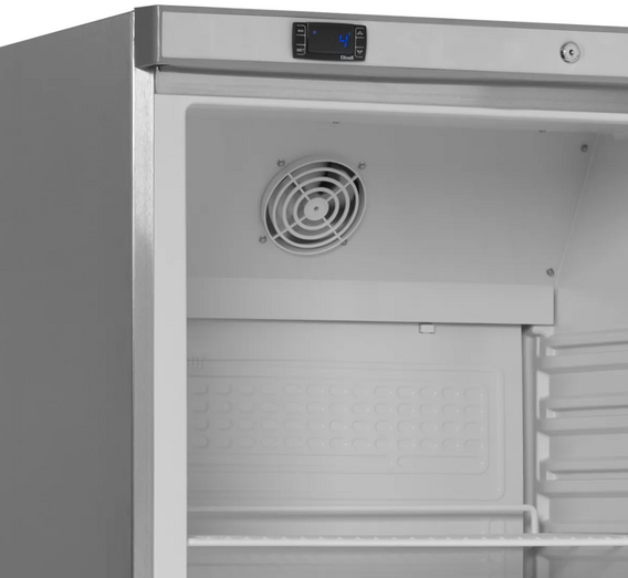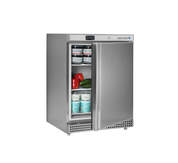 The TEFCOLD UR200X1 is a classic undercounter storage cooler with an impressively low energy consumption. In fact, it uses 47% less energy than the standard UR200 models. It comes with adjustable wire shelves with a load capacity of up to 15 kg per shelf. The small storage fridge has fan-assisted cooling, and the temperature is easy to set on a digital thermostat. The UR range is available in various colors and sizes, and you can choose between solid door- or glass door models. See the UF range for freezer options.