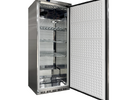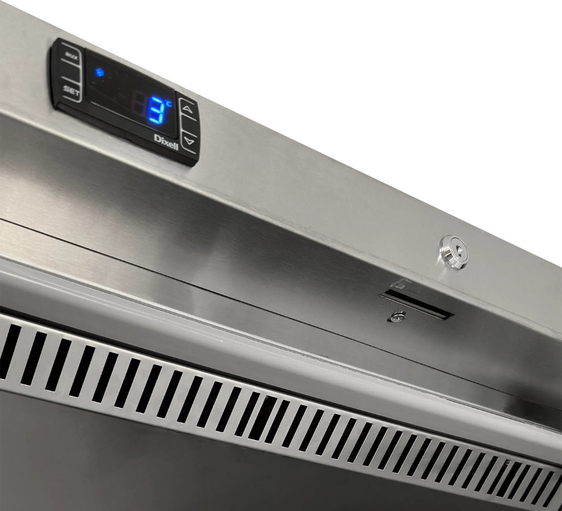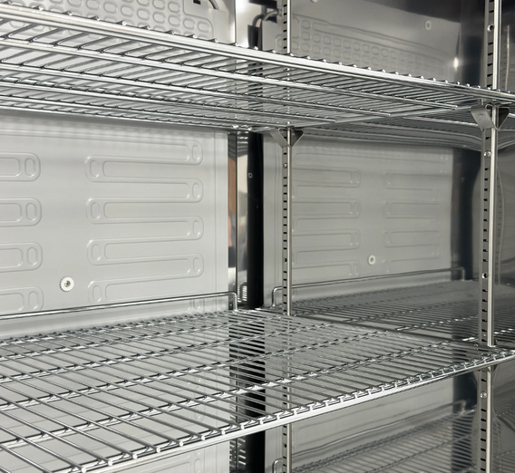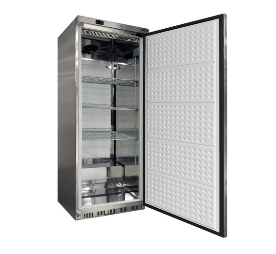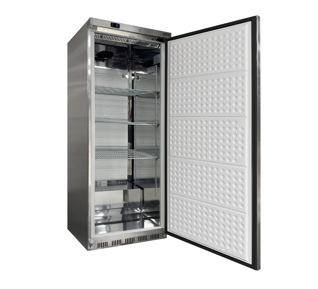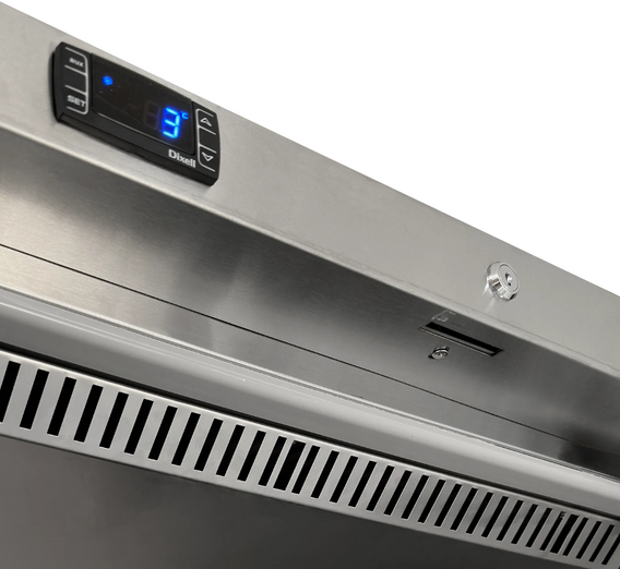 The TEFCOLD UR is a classic storage cooler that combines time-tested reliability with a clean design, featuring a practical integrated handle. Ideal for demanding foodservice environments, this refrigerated cabinet comes with adjustable GN2/1 shelves with a remarkable load capacity of up to 25 kg per shelf. The cooler has a durable stainless steel exterior and interior (except for the door, which is white on the backside). The storage fridge has fan-assisted cooling, and the temperature is easy to set on a digital thermostat. The energy efficiency is remarkable and the cabinet has EU energy class A. The UR range is available in various colors and sizes, and you can choose between solid door- or glass door models. See the UF range for freezer options.