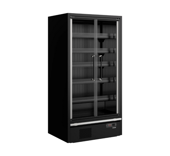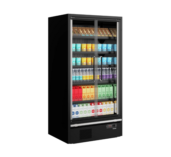 With this full glass door multideck cooler, you get a gorgeous design combined with an energy efficient cooling system. The frameless full vision glass doors allow for great visibility of the products inside. Vertical LED lights run down the inside of each wall, which combined with horizontal LED lighting across the top give excellent illumination and make the contents stand out. The shelves can be tilted to optimize product presentation. Multiplexing kits are available as accessories, so you can create uninterrupted lines throughout your store. As a result of a carefully designed refrigeration system and optimal airflow through the cooler, this cabinet has an outstanding low energy consumption and an impressive EU energy rating.