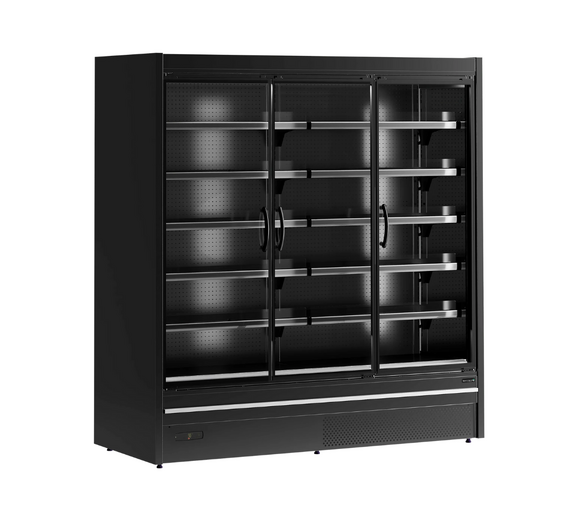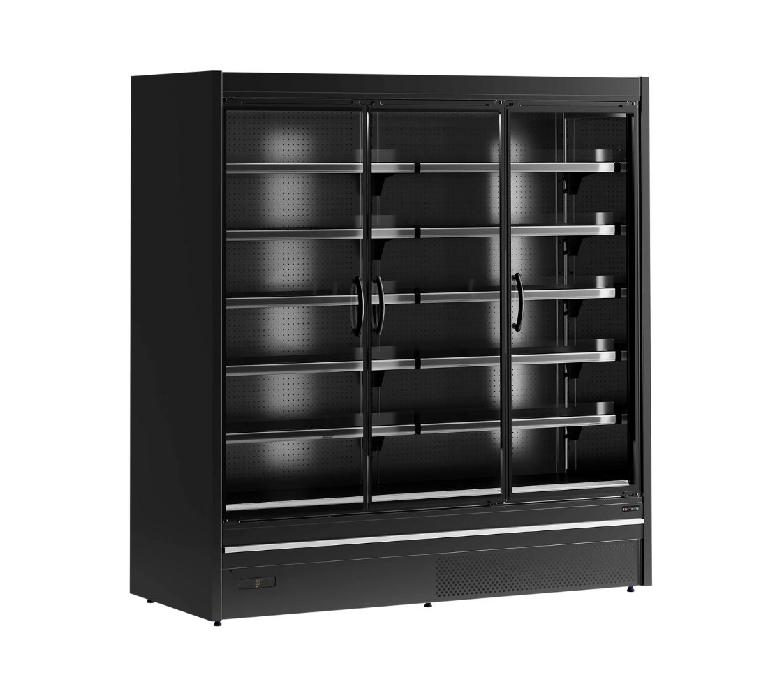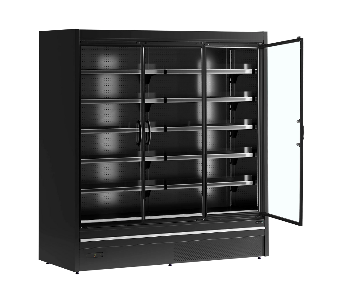 The MDCA multideck cooler offers great product presentation combined with a low-energy and low-noise cooling system. It has temperature class 3M1, ensuring optimal cooling performance for retail settings, and is suitable for displaying vegetables, dairy products, beverages, or packed fresh meat. The cabinet features a digital temperature controller with bluetooth connectivity, making it easy to export data for HACCP compliance. With 400 mm deep shelves and a 450 mm deep base, you get ample storage and display space. The shelves can be tilted to 10° or 20°, and they come with acrylic front risers and ticket strips as standard for excellent product presentation. The base fits standard E2 vegetable boxes for easy loading. Vertical LED lights run down the inside of each wall, which combined with horizontal LED lighting across the top, provide excellent illumination and make the contents stand out. Multiplexing kits are available as accessories, making it possible to create uninterrupted lines of coolers throughout your store.
