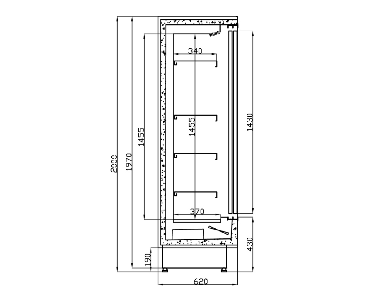 The depth of the "R-B" showcase series is only 620 mm. In developing this series of display refrigerator, special attention was paid to increasing the usable area, the efficiency of the cooling system and increasing the energy efficiency.