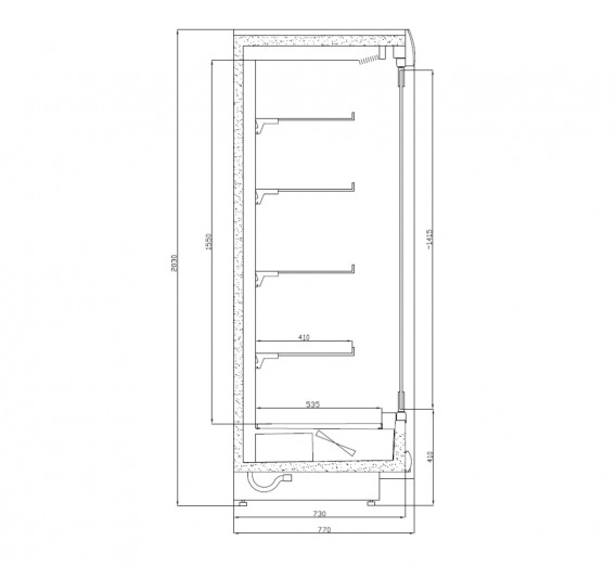 Vertical display refrigerator Cold EVEREST DP/o, internal temperature range: +4 ºC...+10 ºC (at ambient temperature +25 ºC and relative humidity 60%).