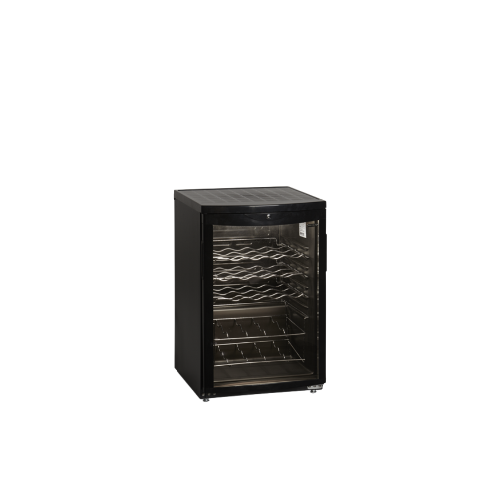 A quality undercounter wine cooler with a smart black finish. Inside there are wine shelves to hold up to 22 x 750 ml. bottles, ideal for display and storage of white and rosé wines. The unit is fan assisted to ensure even cooling over the whole cabinet ensure the serving temperature of the wine being stored.