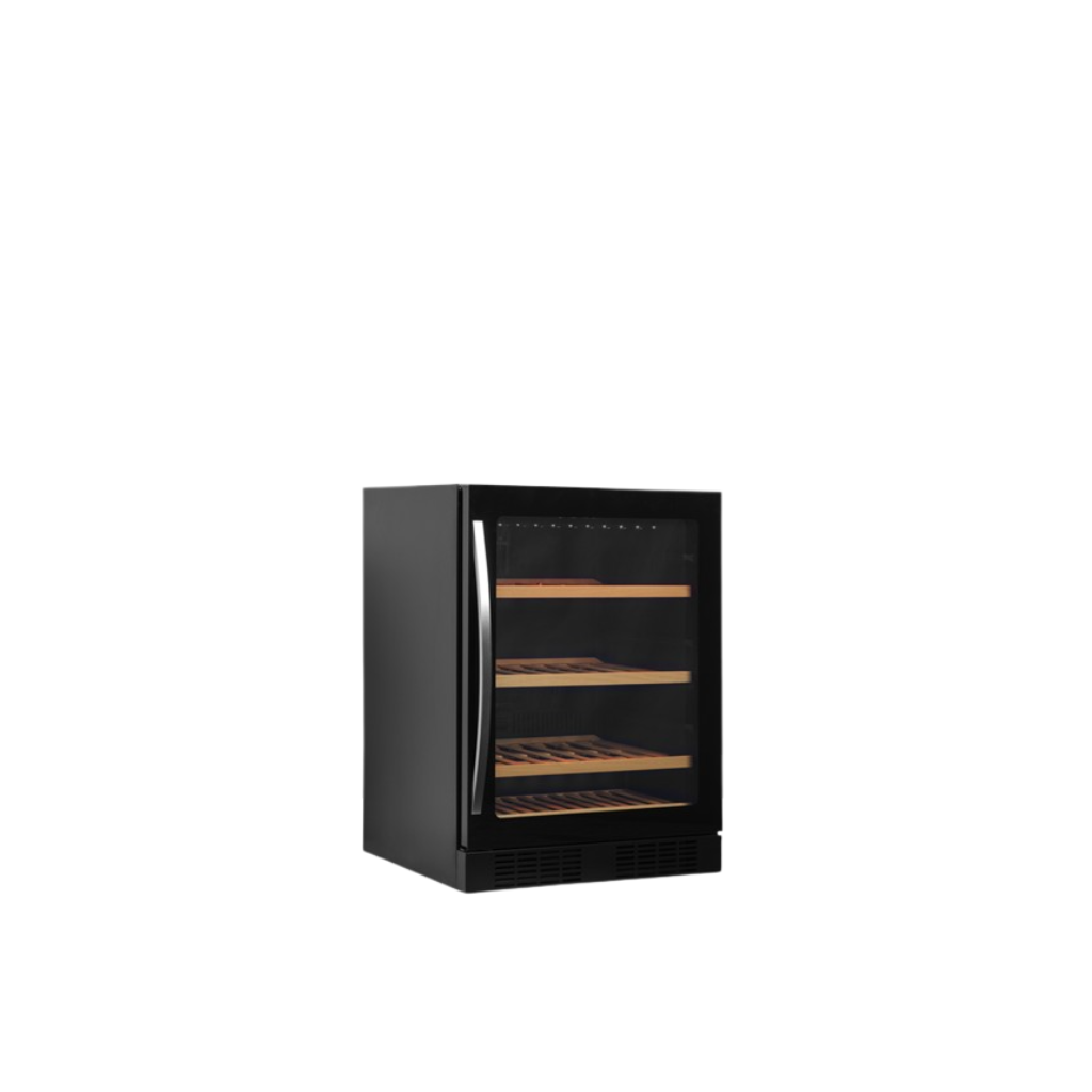 It has a slide out wooden shelves allowing easy access. The white LED lighting showcases the wine bottles nicely against the black interior of the cabinet. In addition to the exclusive design, the wine cooler also has a modern cooling system that reduces the heat, noise and energy consumption of the cabinet.