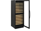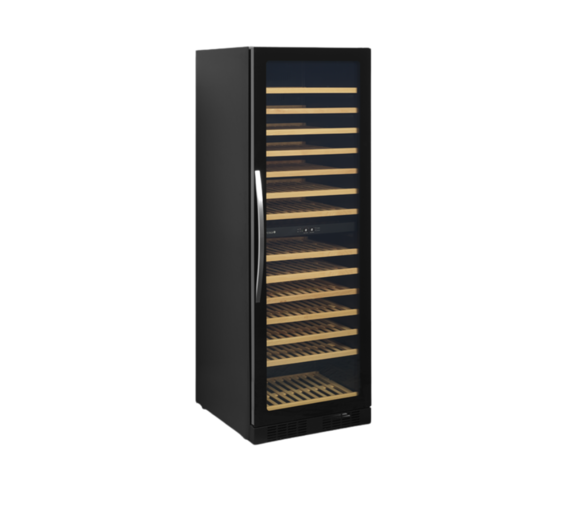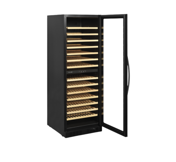 It has a slide out wooden shelves allowing easy access. The white LED lighting showcases the wine bottles nicely against the black interior of the cabinet. In addition to the exclusive design, the wine cooler also has a modern cooling system that reduces the heat, noise and energy consumption of the cabinet.