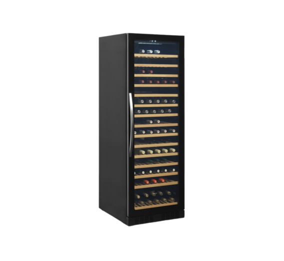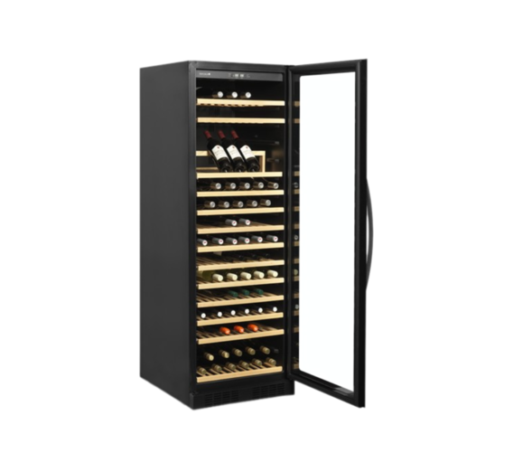It has a slide out wooden shelves allowing easy access. The white LED lighting showcases the wine bottles nicely against the black interior of the cabinet. In addition to the exclusive design, the wine cooler also has a modern cooling system that reduces the heat, noise and energy consumption of the cabinet.