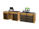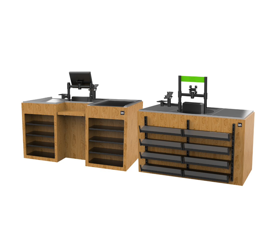 A checkout counter with impulse shelves is a solution for sales stands, which increases product visibility and encourages impulse purchases. Modules can be connected together to create a larger sales space.