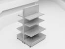 The island shelving system from Stahler is a practical and reliable solution for retail environments.