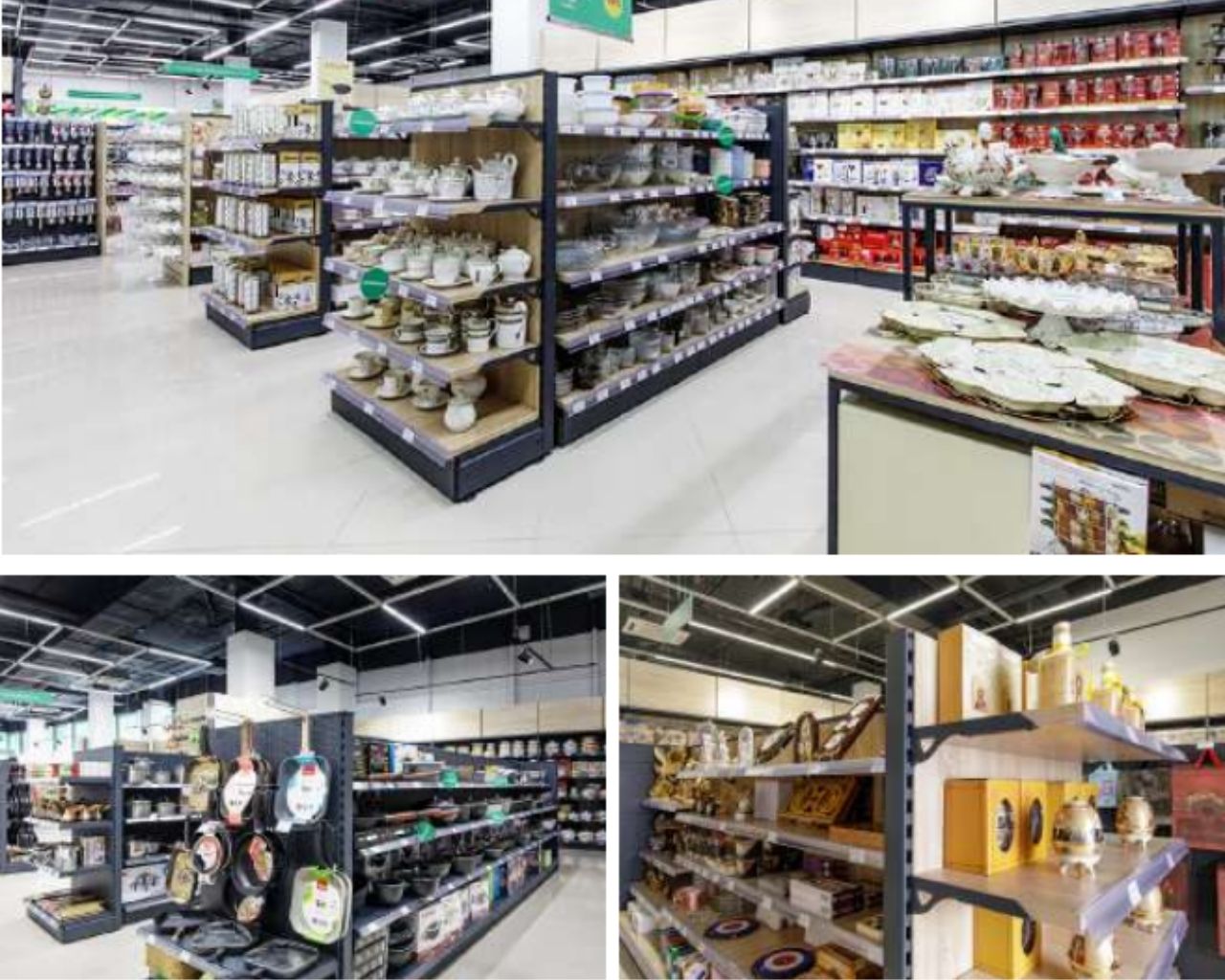 This shelving system is a versatile and reliable solution for effective product display and storage in retail settings.