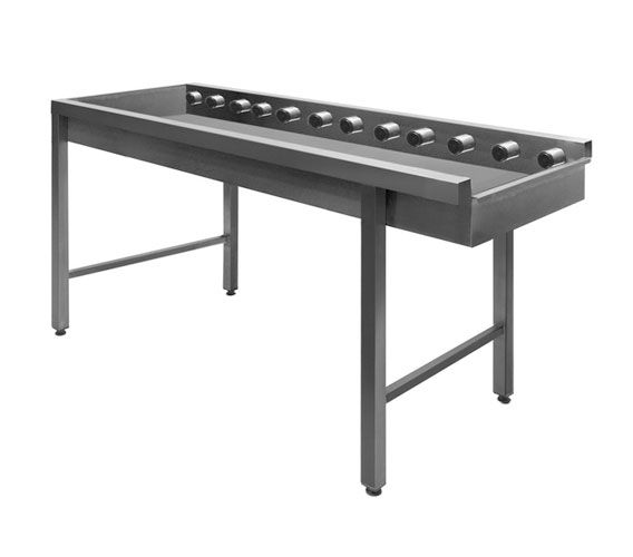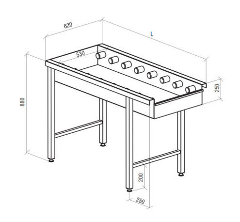 The table class="card__details" is made of stainless steel AISI 304. PVC rollers, gray. The legs are made of stainless steel (square tube 40x40 mm). The legs are adjustable class="card__details" in height (amplitude of 35 mm, + 25 / -10 mm). Possibility to connect to any type dishwashers.