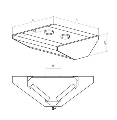 Hood is made from stainless steel AISI 304. Fat filters from stainless steel AISI 304. Fat ejection. Possible to connect to the pipes of diameter: 250, 315 mm.