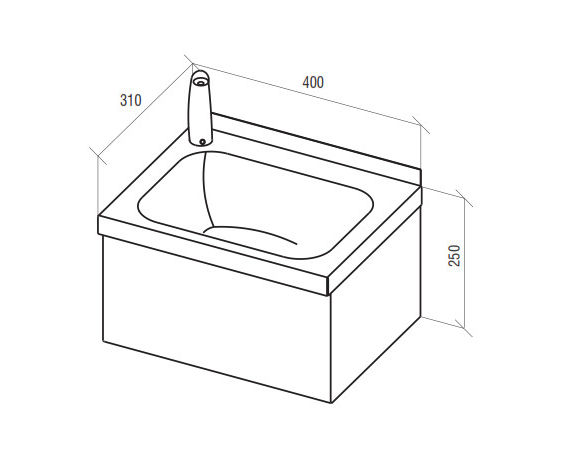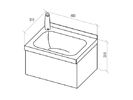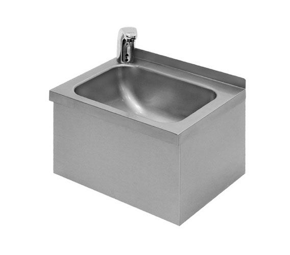 Stainless steel basin (AISI 304). The rear rim height of 30 mm. Sink dimensions 325x230x130 mm. Profile for wall mounting included. Water supply occurs via a touch mixer (reaction distance is 0.1 m at hand). Connectors to connect hot and cold water. Manual setting of temperature and flow forces.