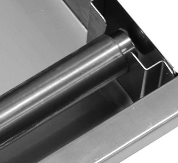 The box is made of stainless steel AISI 304. The roller with shockproof rubber. Rubber feet for better fixation to the surface. Roller can be easily removed for cleaning.