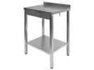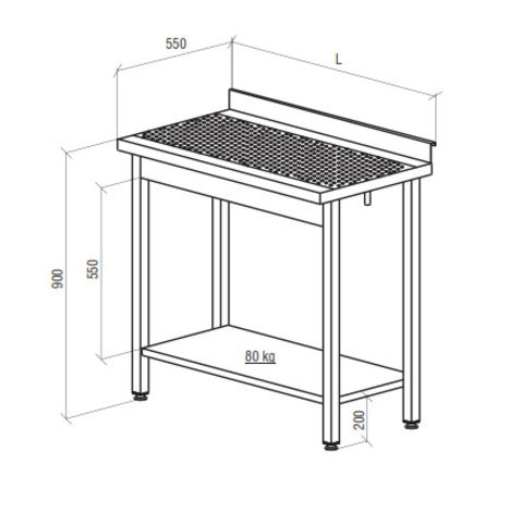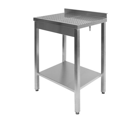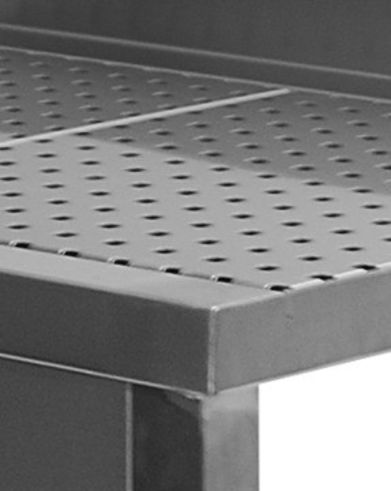 The table class="card__details" top is made of stainless steel AISI 304. Removable dryer, made of perforated stainless steel AISI 304. The legs are made of stainless steel (square tube 40x40 mm). The legs are adjustable class="card__details" in height (amplitude of 35 mm, + 25 / -10 mm). Shelves made of stainless steel AISI 304. The maximum shelf load of 80 kg. There is a rear rim height of 50 mm. Connecting the water drain with a diameter of 16 mm.