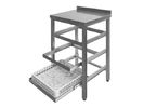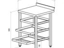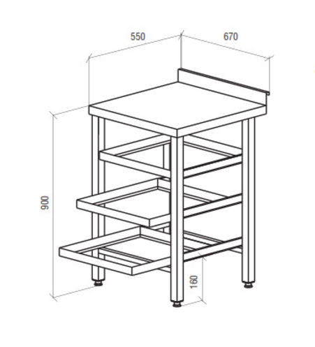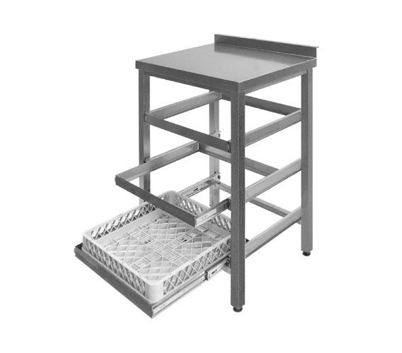 The working surface is made of stainless steel AISI 304. 3 drawers, dishwasher cassette (500x500 mm) made of stainless steel AISI 304. Distance between boxes 225 mm. Stainless steel feet (square tube 40x40 mm). The legs are adjustable class="card__details" in height (amplitude of 35 mm, + 25 / -10 mm). There is a rear rim height of 50 mm.