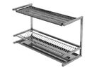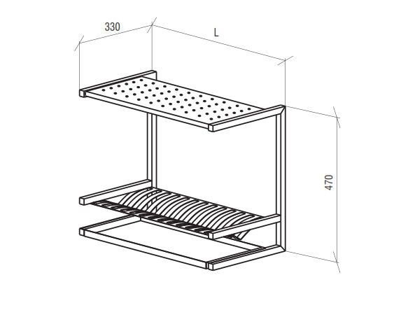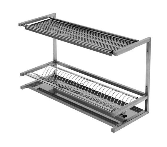 A shelf is made from stainless steel ANSI 304. Upper shelf for glasses, lower for dishes. Maximal diameter of dishes - 320 mm. Pallets for water are present at both shelves.
