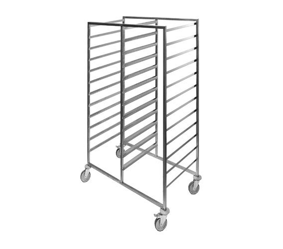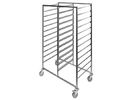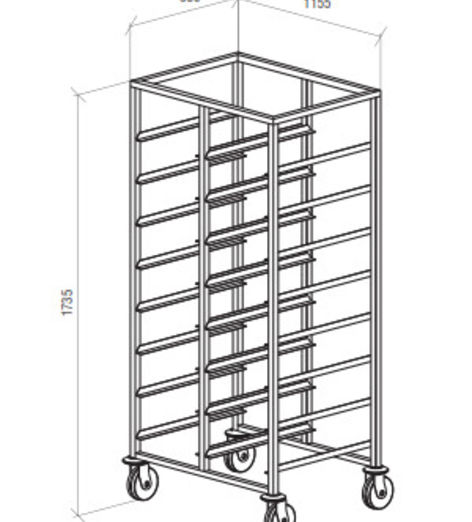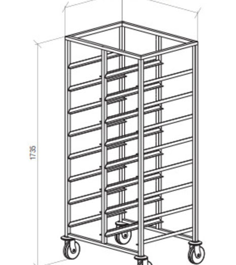 The frame of trolley is made from stainless steel (square pipe of 25x25 mm). Zincked wheels of 125mm - "Blickle" (Germany). 2 wheels with a stop device. 4 round plastic bumpers.