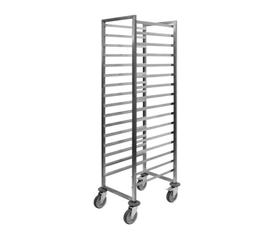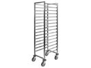 The frame of trolley is made from stainless steel (square pipe of 25x25 mm). Zincked wheels of 100 mm - "Blickle"(Germany). 2 wheels with a stop device. 4 round plastic bumpers.