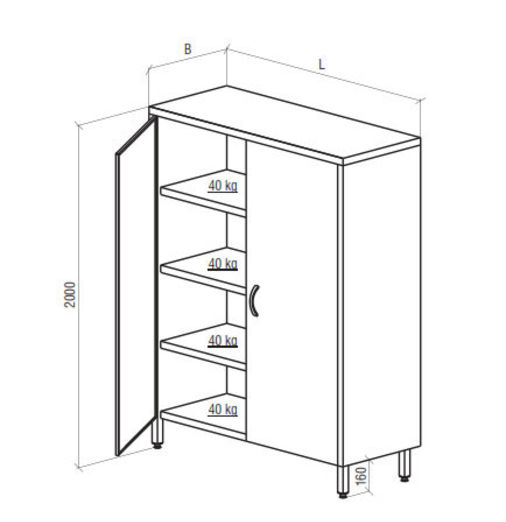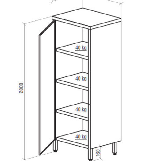 A buffet is made from stainless steel ANSI 304. Three fixed shelves plus a lower shelf. Maximal loading on the shelf is 40 kg. Hard steel pens. Height adjustable class="card__details" legs from stainless steel (amplitude of 35 mm)
