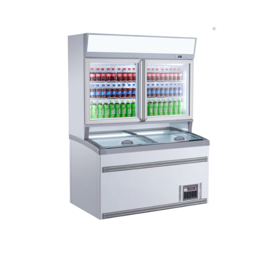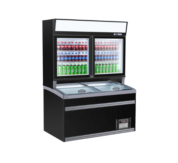 Now we offer refrigerated display cases and freezers, as well as combined freezers with glass doors. Available with upper and lower unit.