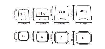 | Ledus kubiņu svars,g: | 13 ;18; 33; 42 |